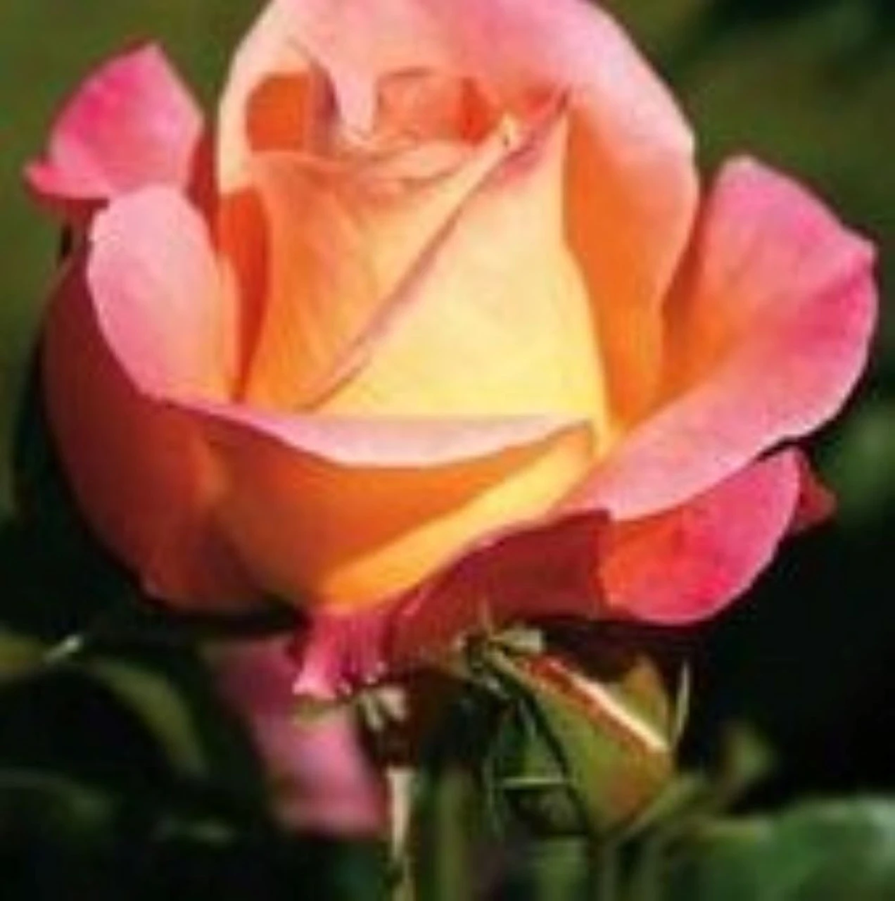 This is a rather showy double flowered hybrid tea rose. The flowers are an alluring mixture of pink, salmon pink, and amber yellow, the colours intermixed to make a bloom that has been likened to the colour of a cockatoo’s beak! The flower opens rather formally with recurved outer petals.