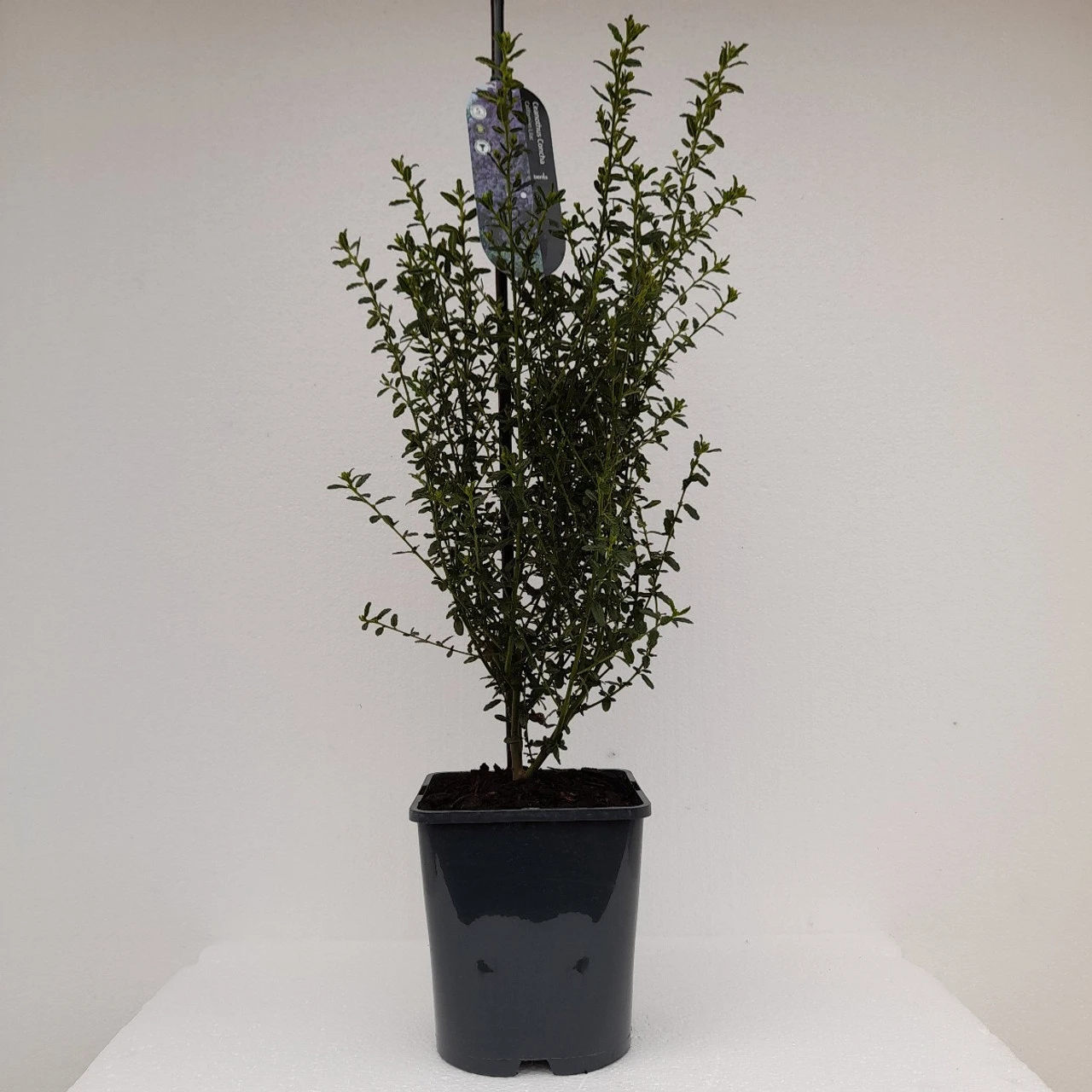The dark blue vibrant flowers of this variety come in dome shaped clusters that more or less immerse the plant. It is wonderful in its May long flowering spree. The shrub itself has arching branches and small slender dark green leaves. The flowers emerge from red tinted flower buds. It is an attractive backdrop even when out of flower.