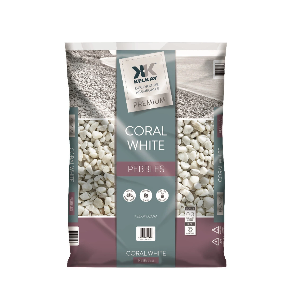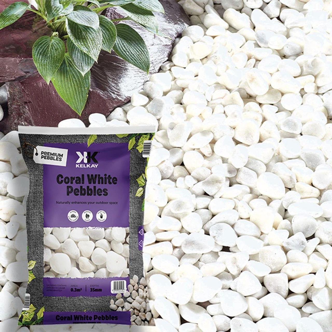 Introducing our Coral White Pebbles, perfect for adding a touch of elegance to your outdoor spaces. These gold coloured chips, sized between 20-40mm, are versatile and suitable for various applications such as decorating paths, driveways, and around paving and architectural plants.