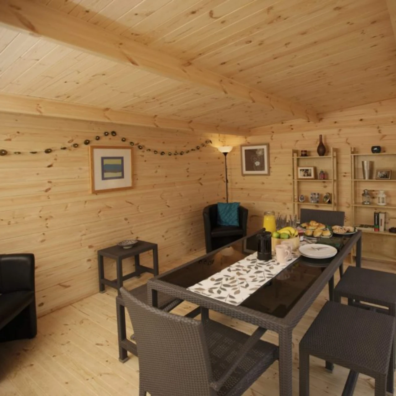 With plenty of windows to allow natural light in this makes the Mendip log cabin a very usable and versatile extension to your living space. The internal depth of 3.7m and width of 4.7m give lots of wall space for shelving, cupboards or other furniture.