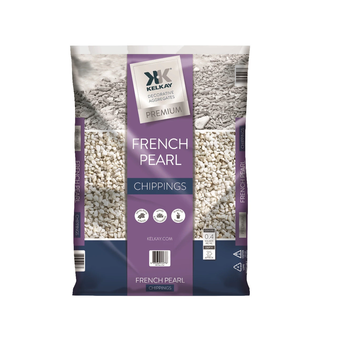 Introducing our French Pearl Chippings, perfect for adding a touch of elegance to your outdoor spaces. These gold coloured chips, sized between 16-32mm, are versatile and suitable for various applications such as decorating paths, driveways, and around paving and architectural plants.