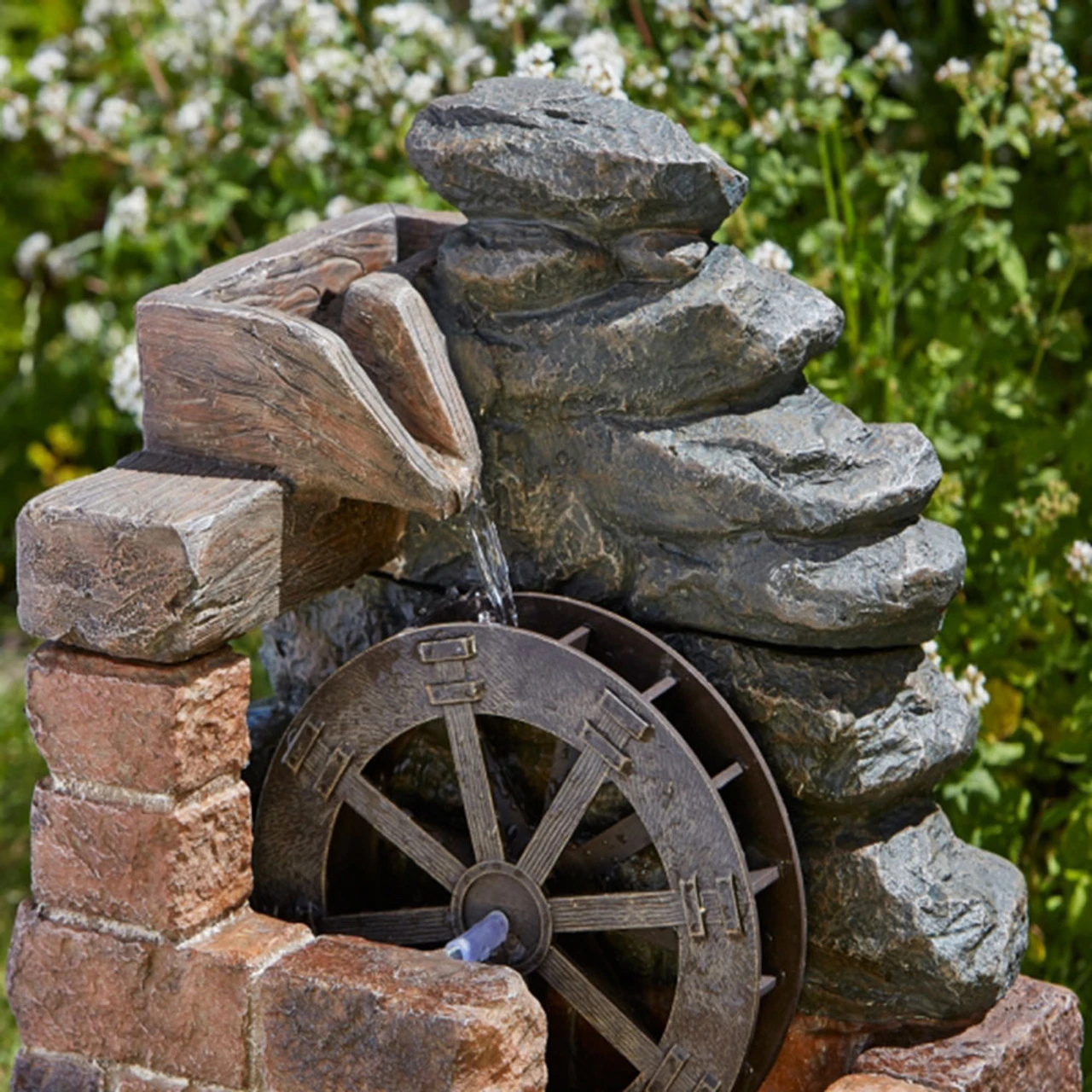 Heywood Mill Solar Water Feature creates a relaxing atmosphere in your garden, patio or on your balcony. Specifications: – Solar powered resin fountain – Water gently cascades over the rotating water wheel – Easy to use – no mains wiring – With night light – Works in direct sunlight Dimensions: H:34cm x W:25cm x D:50cm
