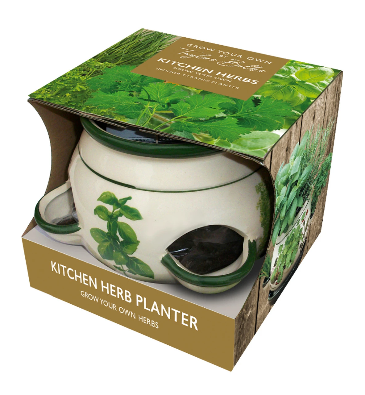 Each Kit contains ceramic pot, peat-free compost, cultural & following seeds: chives, parsley, coriander, basil, chervil & oregano.