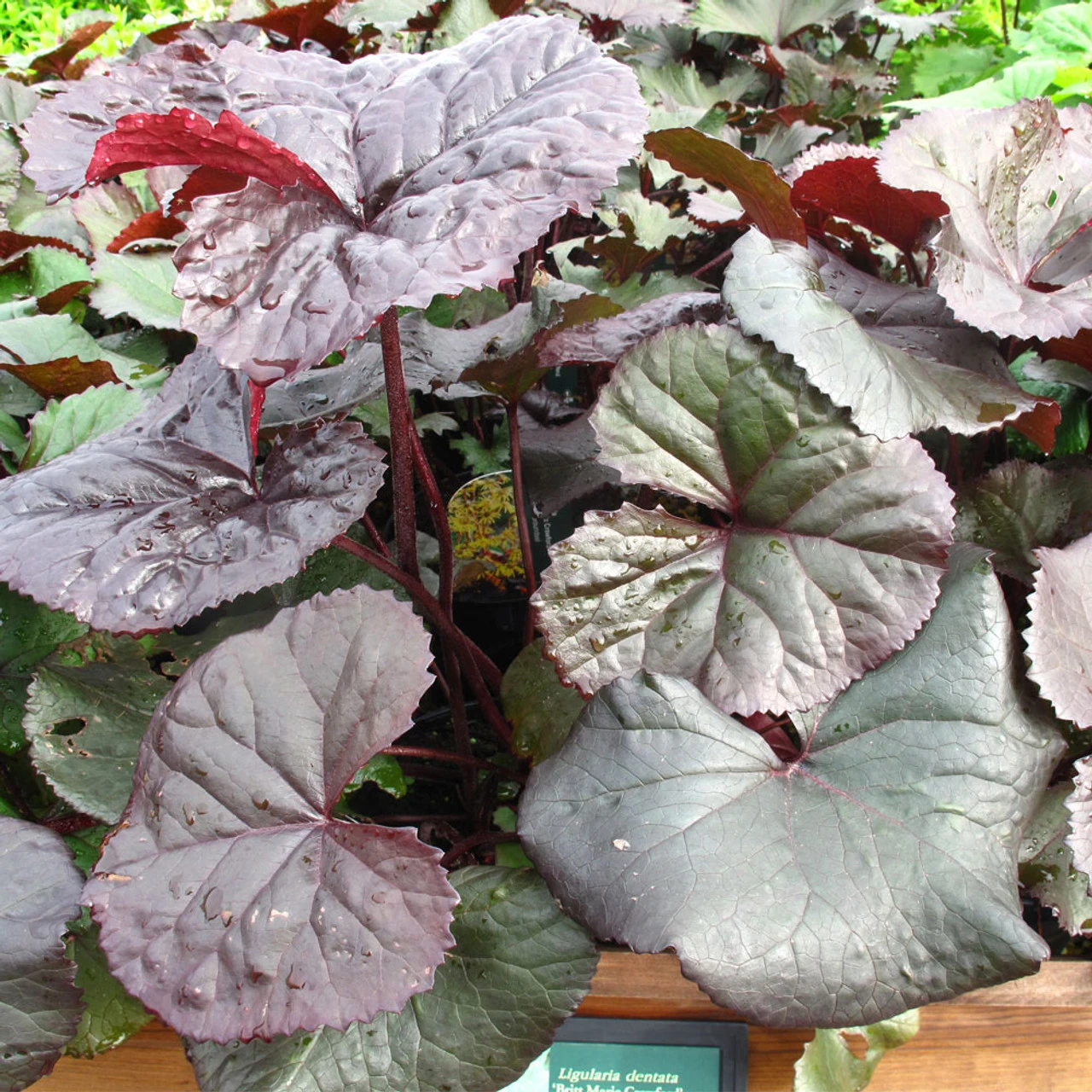 A new and very attractive selection with large dark blackish maroon leaves and deep orange yellow flowers – it is darker and more compact than ‘Desdemona’.
