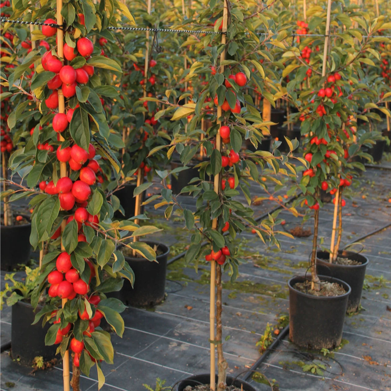 Malus ‘John Downie’ This variety is an old favourite grown particularly for its fruit which are large, orange and red and have a good flavour (though they are very sharp and will need lots of sugar). The white flowers – pink in bud – are attractive too. It is an excellent pollinator for many edible apple varieties. Small RHS AGM Available for Click & Collect Only.