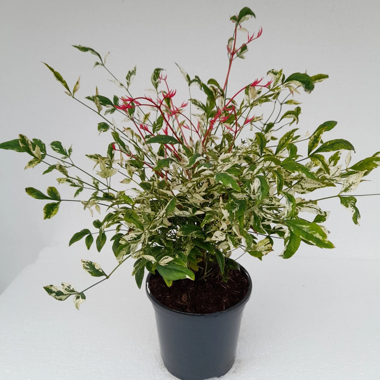 This has long slim stems that hold elegant pointed variegated leaves. These are in shades of green, white and pink, sometimes bronzed pink. The leaves are flushed pink in spring. It makes an upright shrub. It flowers in summer when there are panicles of white flowers, attractive, albeit rather small individually. These are generally followed by masses of red berries that are a long-lasting feature in winter.
