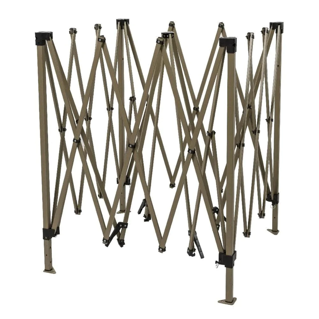 Larger than your average pop up, measuring 4m x 4m with a tan coloured, steel frame making it sturdy and strong. The Norfolk Leisure Got It Covered Pop Up Gazebo has a heavy duty, water resistant canopy which comes in Grey to complement your garden furniture. The vented top section on the canopy allows air to pass through it, we do recommend that canopies are anchored securely, and we advise that the gazebo should be taken down if strong weather is predicted.