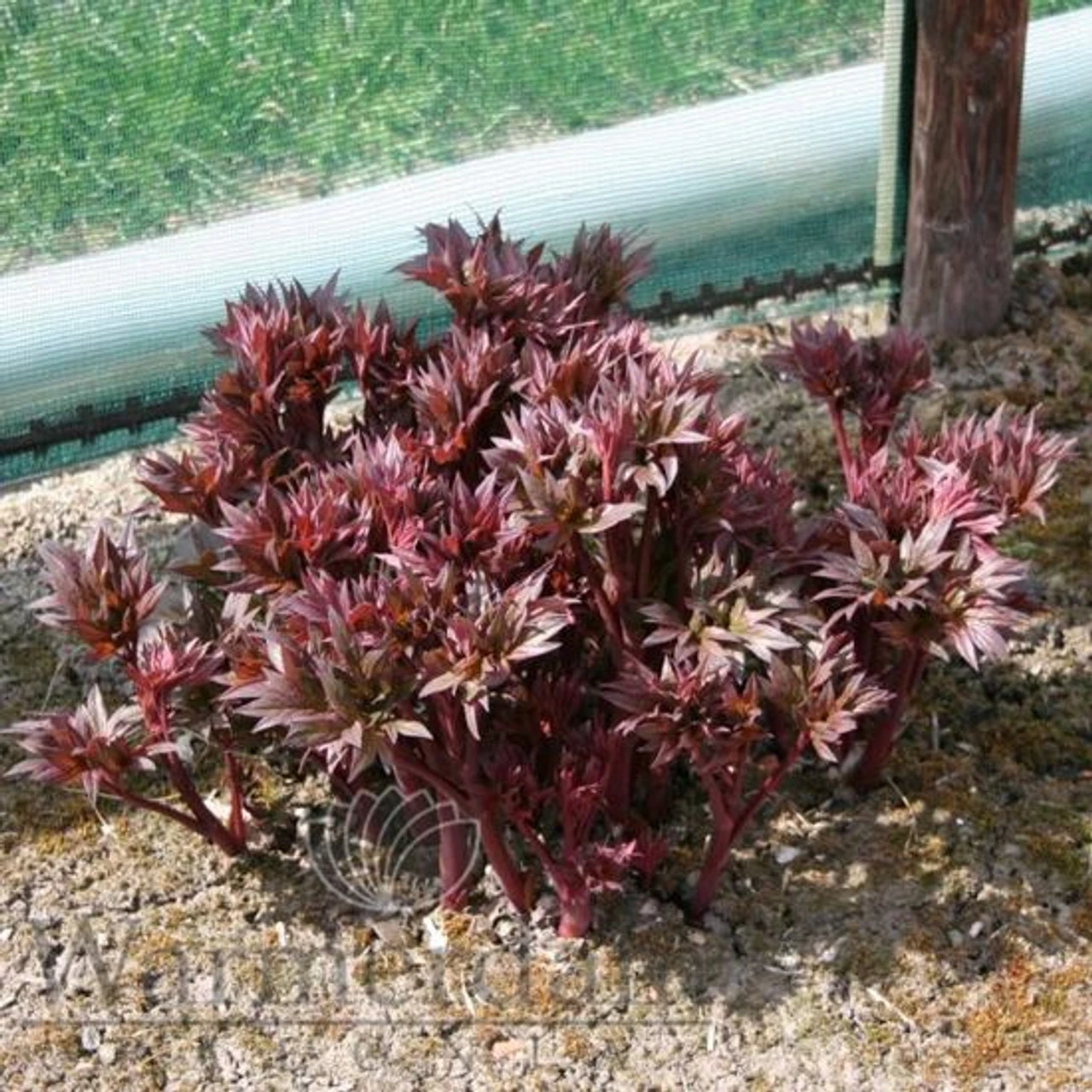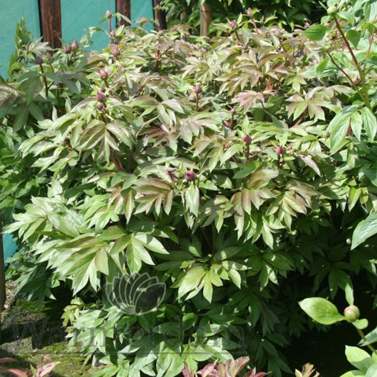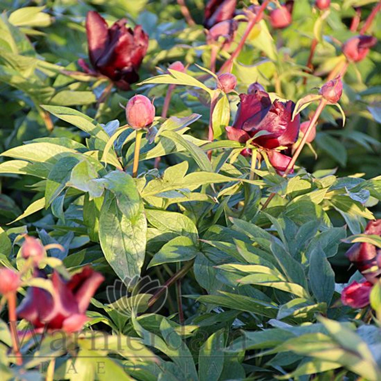 Very deep dark red, relatively small, single type flowers on top of fantastic strong and dark green foliage. The very special near-black colour and the strong bush habit make ‘Dark Eyes’ a prominent variety in our catalogue. Like all the great intersectional hybrids, bush habit is very compact and flowering comes easy and is extremely rich. Rarely offered.