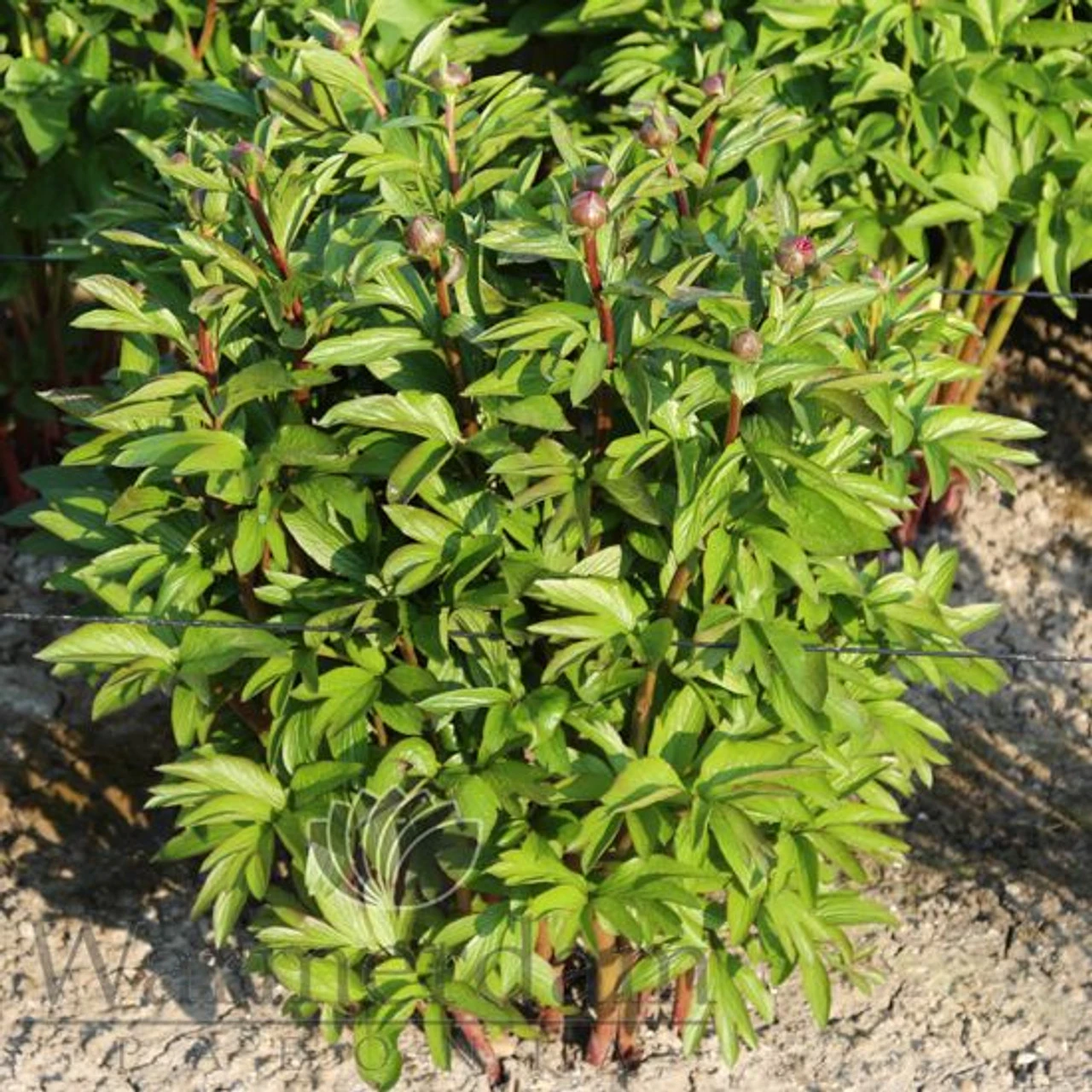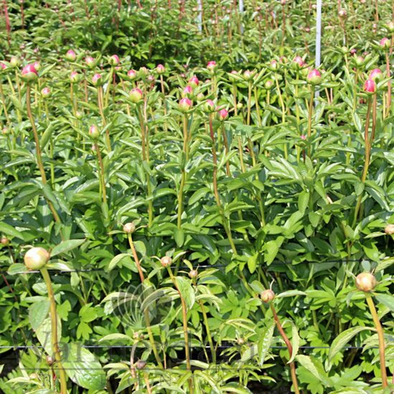 Triple hybrid. ‘Lorelei’ is a genuine masterpiece, opening flowers show a vivid orange-pink colour – unique in peonies. The rather large flowers fade to a lighter apricot-orange. During the maturing process of the flowers the bases of the flower petals remain deep pink. Flowering time is nearly a week later than Red Charm. Thanks to her very strong stems the presentation of this splendid variety is simply fantastic. ‘Lorelei’ is a sibling of ‘Command Performance’ and ‘Many Happy Returns’, and even more special and rare. Not even all superlatives combined would do this extraordinary peony justice.