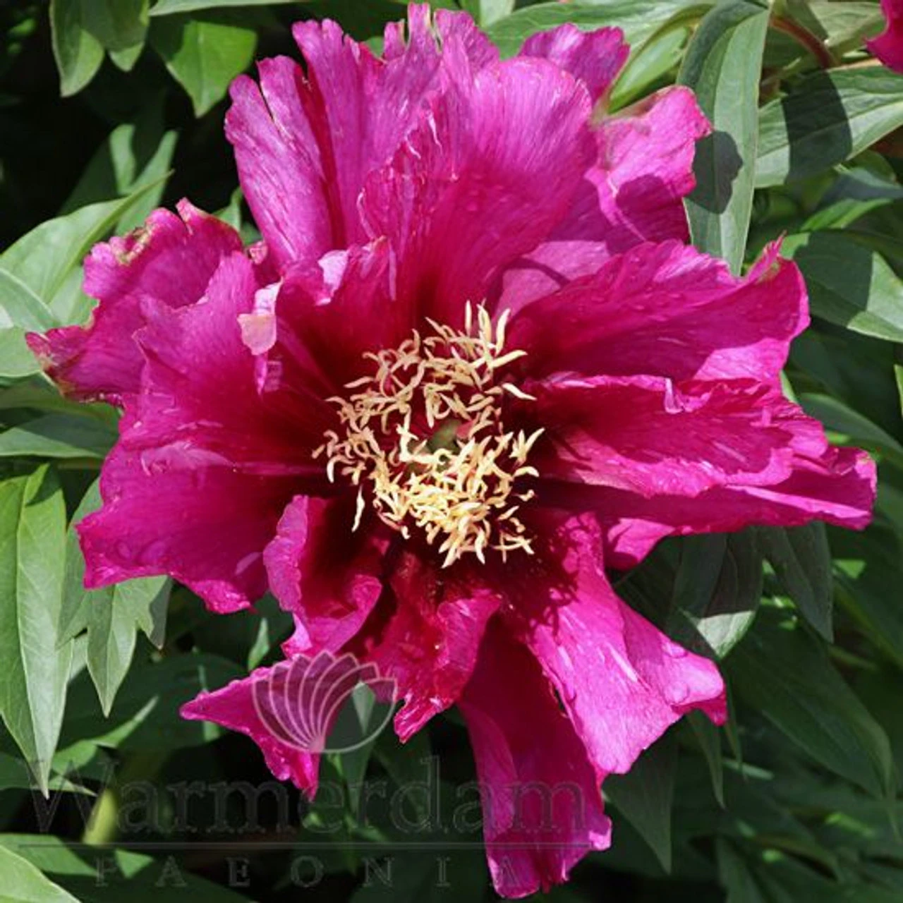 Single to semi-double flowers of an uncommon fuchsia purple colour, attracting attention from a distance. Flower petals are relatively large and are darked around the edges. Leaf colour is quite dark green. Floriferous and a compact and very appealing bush habit, just like very many of her fellow intersectional friends. An exclusive and high end variety.