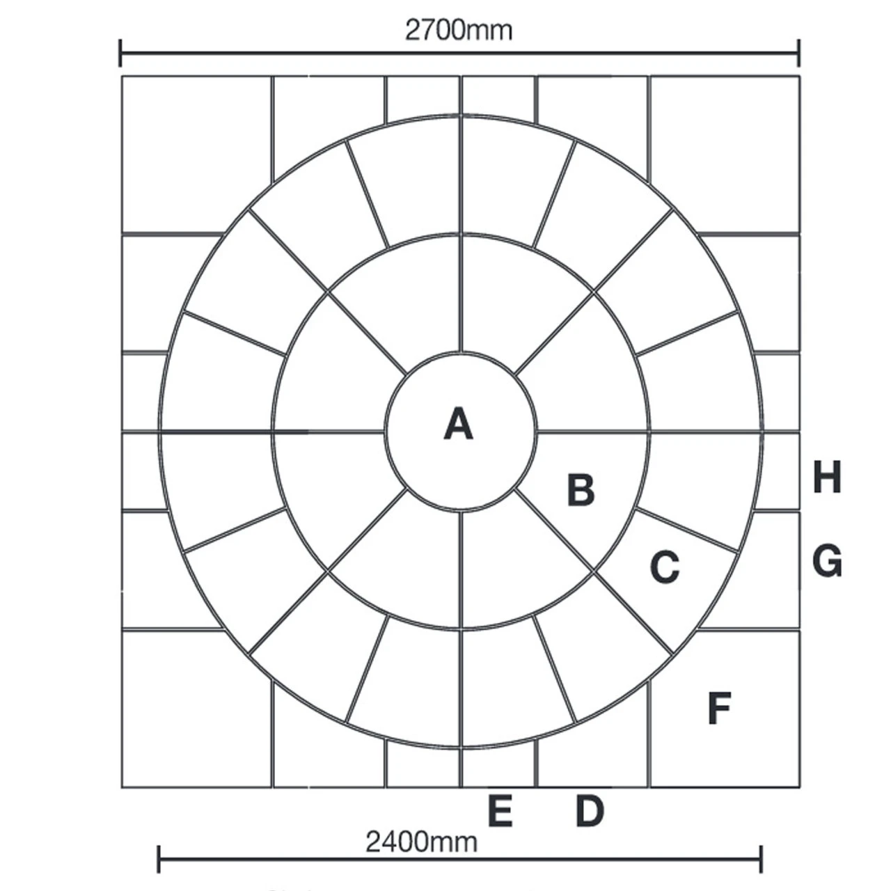 This kit turns the circular kit into a square, measuring 2.7m.