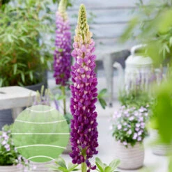 Instantly recognisable, many people remember lupins from childhood in their parents or grannies garden. You will be rewarded with great spires in every colour, the humming of bumble bees during the glorious summer days as they go about their relentless quest for nectar, and flowers which look great in the borders, fantastic in a vase. Their perfume is distinct, filling the air with a heady peppery, mossy scent and very much more noticeable indoors. Strip the foliage and side shoots first or the florets will drop. Plunge into water and enjoy a big, colourful display for a good week.
