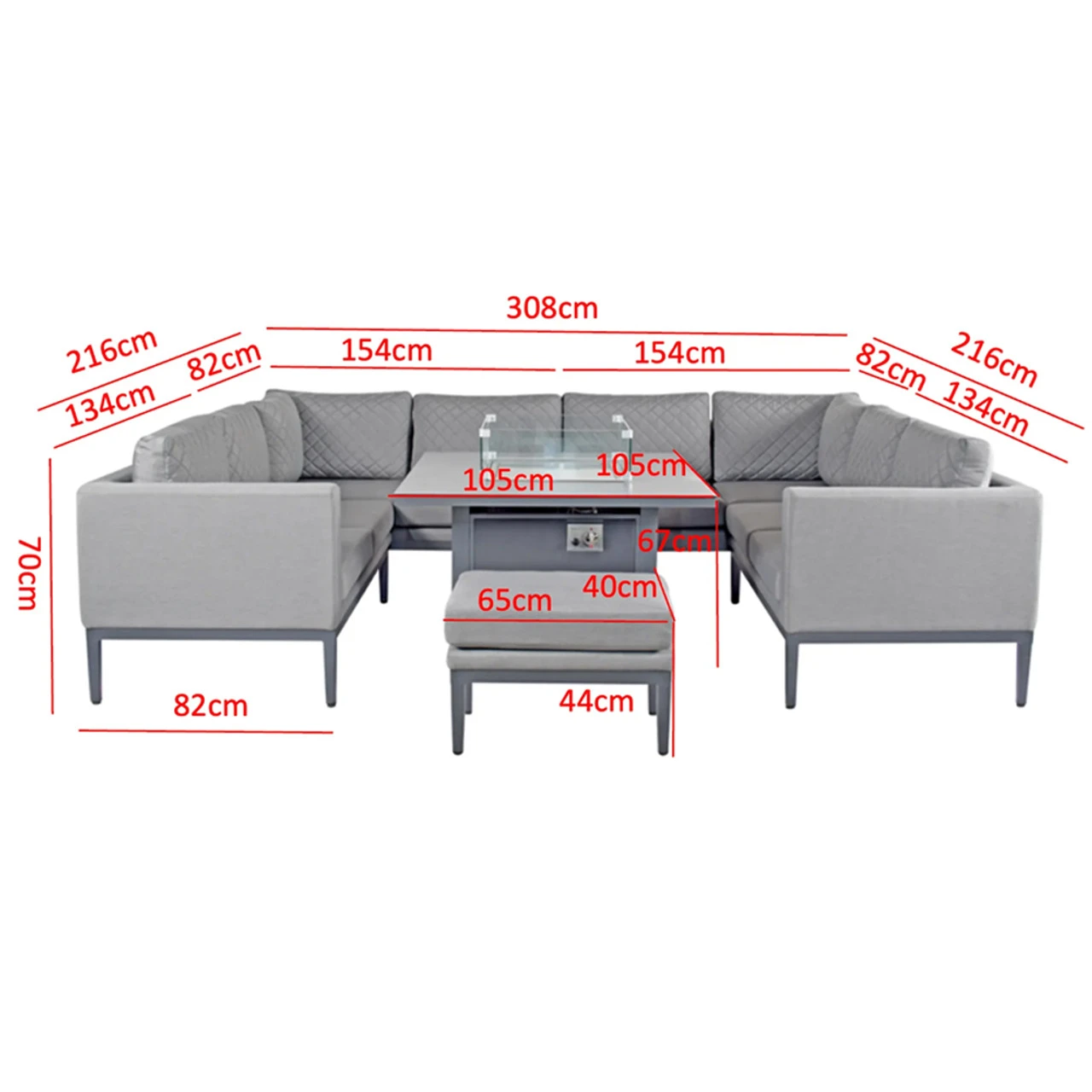 Filled with thick quick-to-dry foam that is designed to ensure constant air circulation for a complete dry in around 30 minutes, a sudden downpour will no longer be an issue. An integrated gas firepit system will allow you to enjoy your garden furniture to the late hours. All Supremo firepits are UKCA and CE registered and will accommodate a 5kg patio gas bottle, which is enclosed underneath the table. Made with Aluminium frames, powder-coated in contemporary grey tones, to prevent rust. The durable materials is perfect for all-year use.