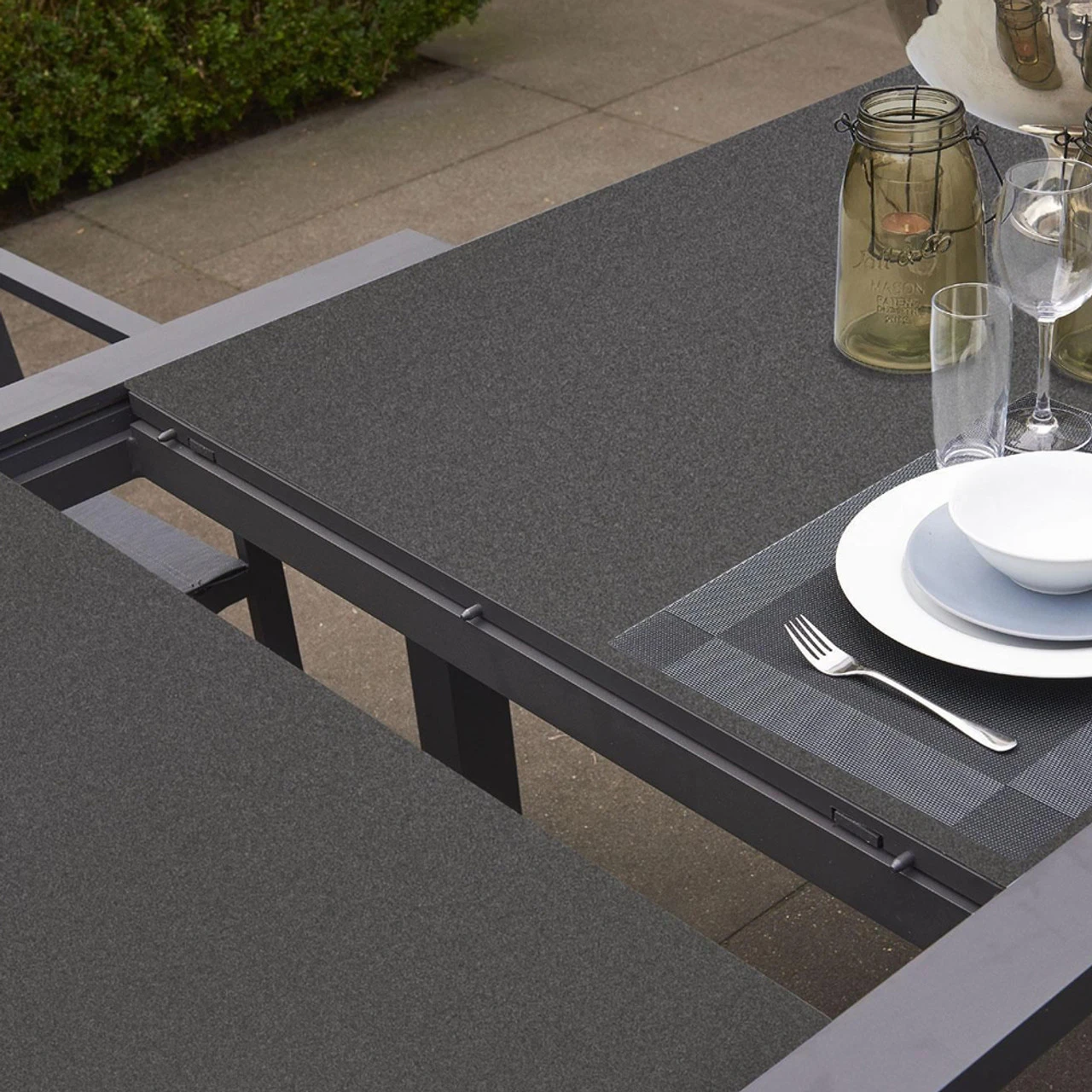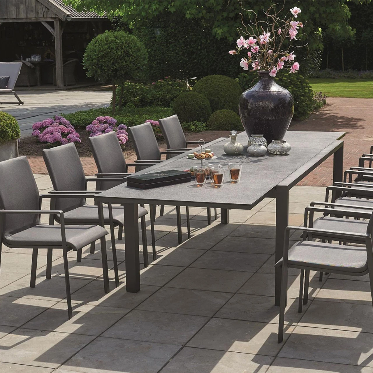 A very modern design The LIFE Anabel Extendable Dining Table with 10 Life Sense stackable armchairs will be the perfect place to sit and entertain family and friends. The ultimate in modern garden furniture design. Features a simple extending operation. Each section draws open, and the middle section smoothly moves up to position.