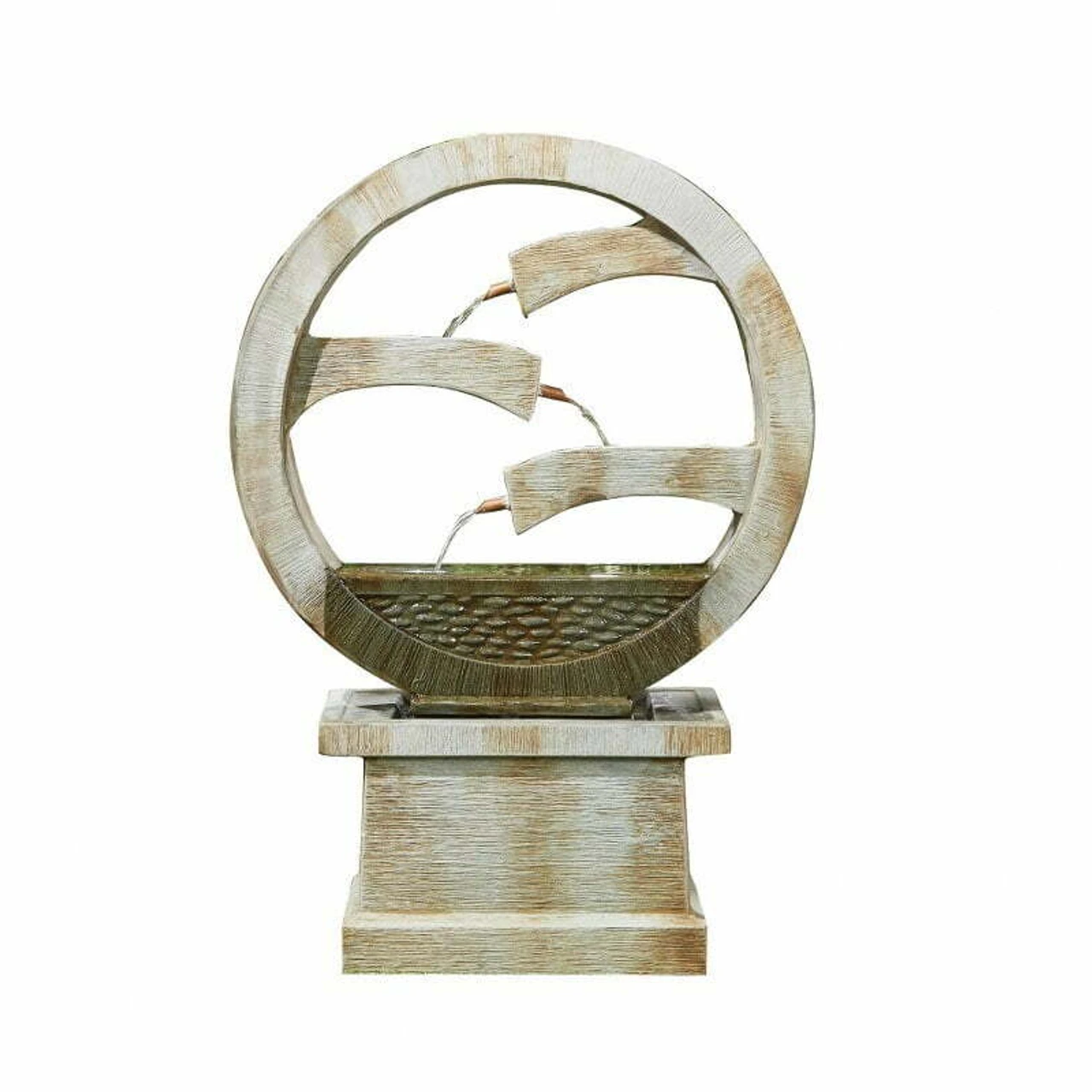 - Self-contained fountain with recirculating pump included.
